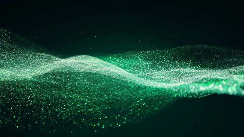 Green Glittering Particles Flow and Undulate on a Dark Background Creating Abstract Waves Pro Video