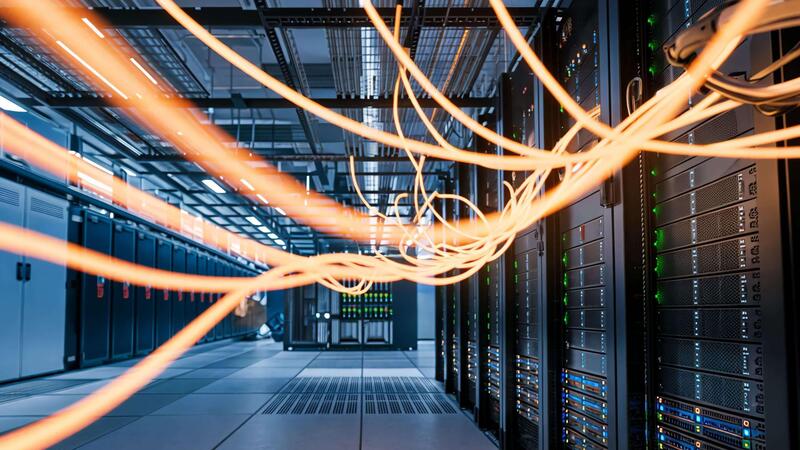 Inside a Large Data Center With Server Racks and Cables Pro Video