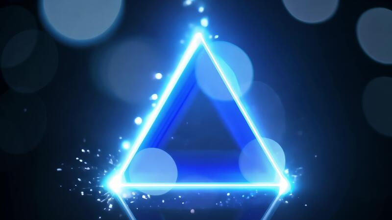 Blue Glowing Triangle Animation on Black Background With Bokeh and Particle Effects Pro Video