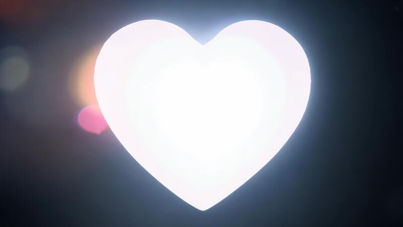 Glowing Heart Light Shape Shines Brightly in a Dark Room, Creating Soft Bokeh Effect Pro Video