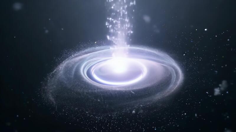 Galactic Event Simulation Showing Swirling Light and Particles in Dark Space Pro Video