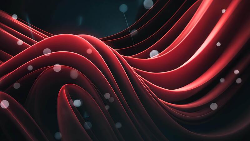 Red Abstract Waves Ripple Across Dark Background With Floating Particles Around Pro Video