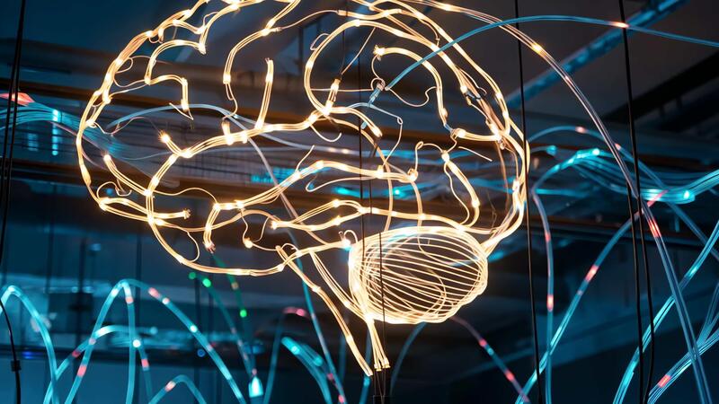 Illuminated Brain Model and Neural Network Display at Conference Pro Video