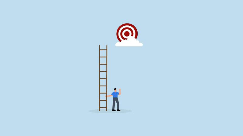 Mistake and error causing business problem and missing goal, despairing entrepreneur with an inadequate ladder cannot achieve goal, Pro Video