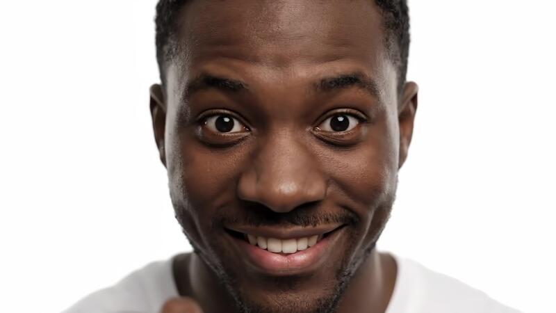 Man Smiles While Looking at His Mobile Device on a Plain Background Pro Video