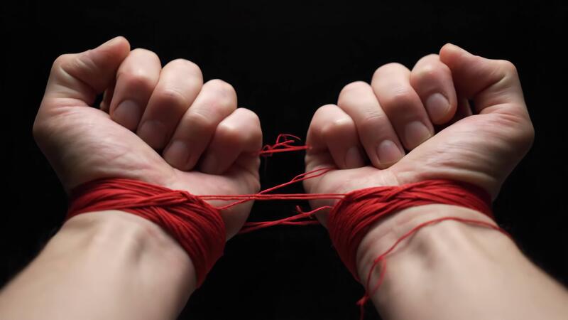 Hands Tied With Red String Show Constraint and Limitation in Studio Setting Pro Video