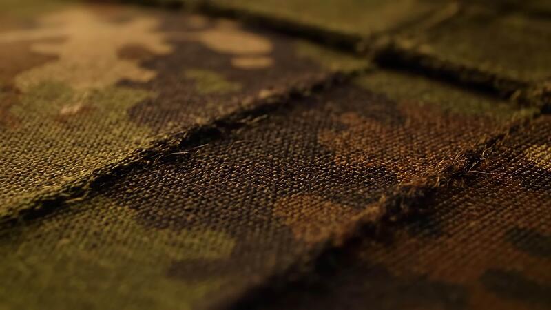 Close up of Camouflage Fabric With a Patch and Visible Texture Pro Video
