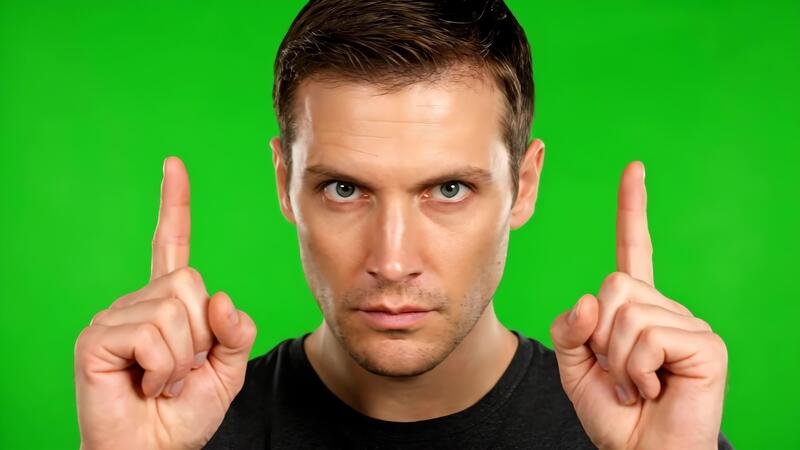 Man Points Upwards With Both Index Fingers Against Green Background Pro Video