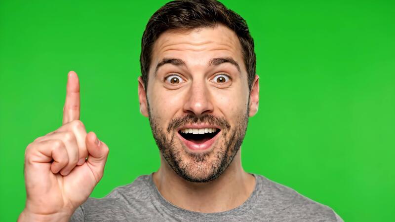 Man Has an Idea on a Green Screen, Pointing up While Looking Excited Pro Video