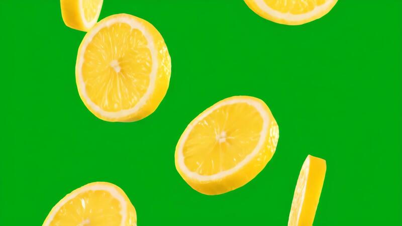 Lemon Slices Falling Against a Green Screen Background, Perfect for Compositing Pro Video