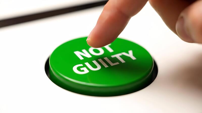 Finger About to Push a Green Not Guilty Button on a White Surface Pro Video