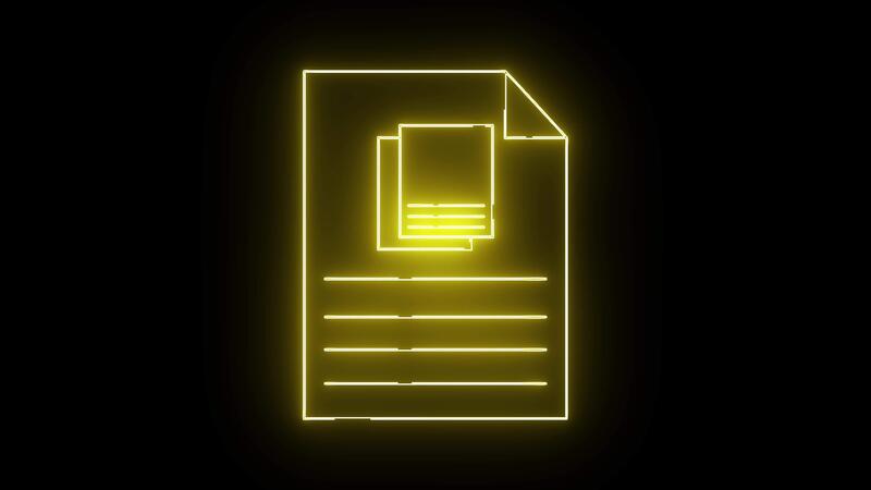 A yellow neon documents icon isolated on a black background shows a file with lines of text and another file above it Free Video