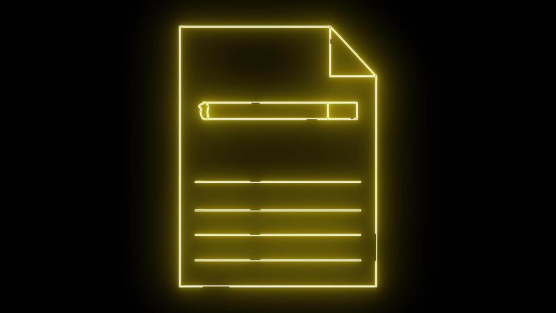 Yellow outline of document with folded top corner lines representing text on black background Free Video