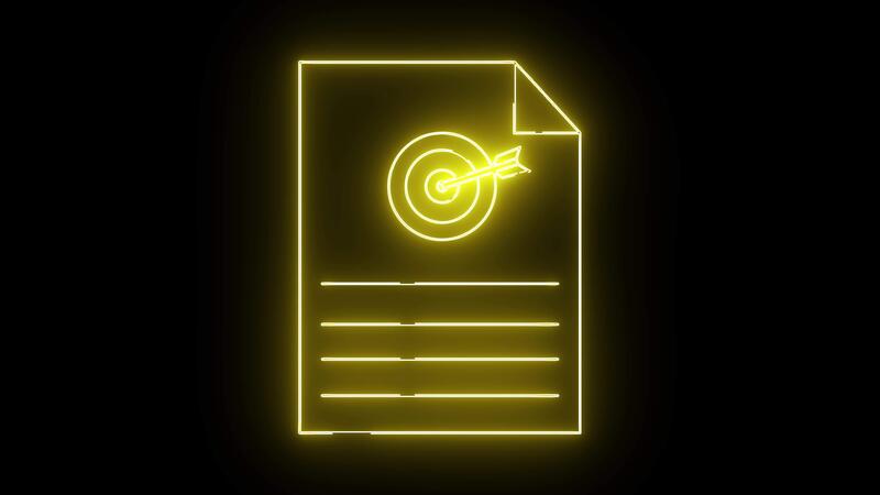 Neon document outline with a target and arrow symbol highlighted in yellow against a black background Free Video