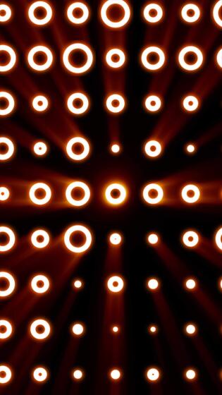 Bright circular lights forming a glowing orange grid pattern, creating a futuristic and energetic visual design Free Video