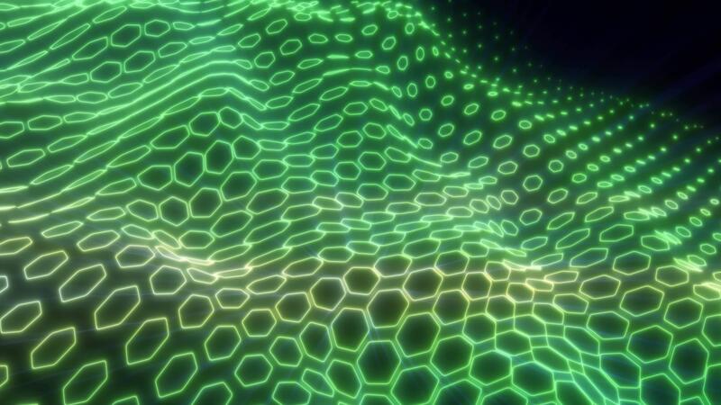 Glowing green hexagonal mesh forming a dynamic wave surface, symbolizing sustainable technology and digital innovation Free Video