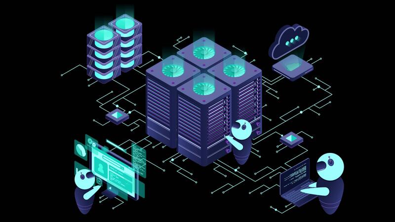 Data center and web hosting isometric animation. Cloud computing storage. Isometric server room rack. Isometric technology. Transparent background with alpha channel Free Video