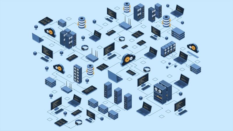 Isometric data network management animation. Cloud storage data and synchronization of devices. Networking, database, cloud storage. Isometric technology. 4K animated in isometric style, Free Video