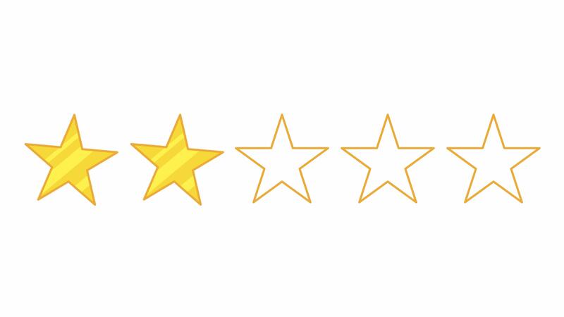 Two Stars Rotating in Five Star Rating Row. A five star rating row where the first two stars smoothly rotate in a seamless loop. With alpha channel on transparent background. Pro Video