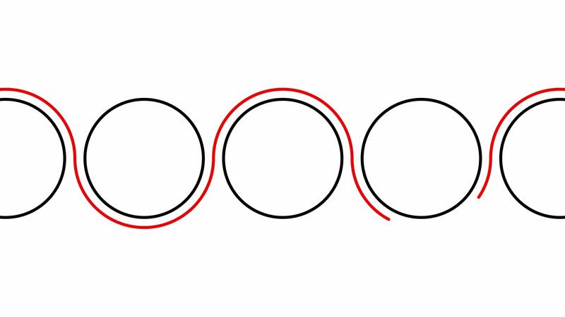 Moving Circles with Dynamic Red Outline Animation. This seamless loop animation shows a series of black circles smoothly moving to the left while a red line dynamically traces around them. Pro Video
