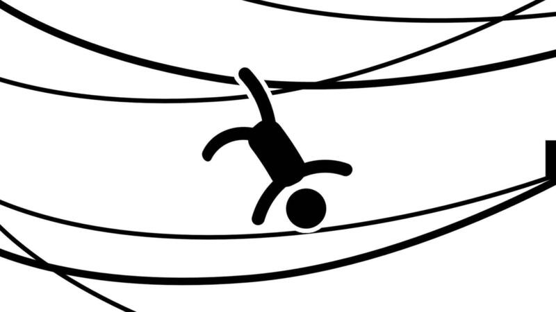 A stick figure falls helplessly through a tangled web of lines, representing entrapment and the struggle to escape unseen forces Free Video