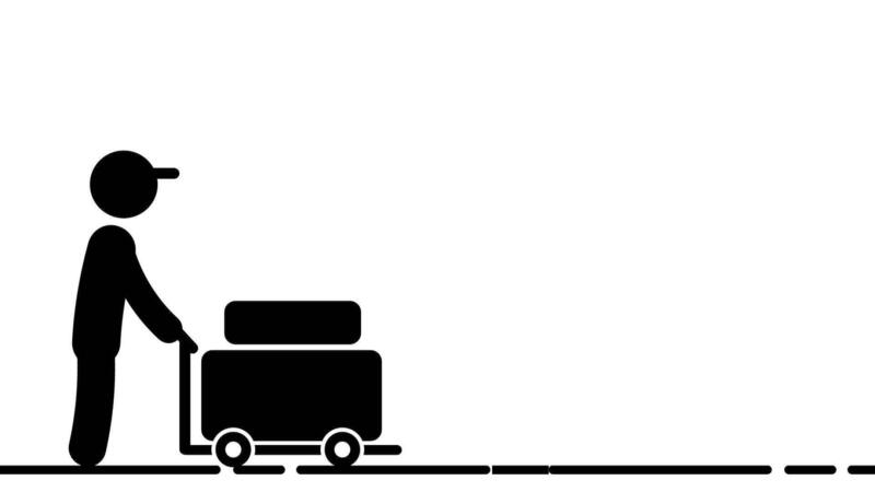 A worker is seen pushing a heavy cart with stacked materials, showing physical effort and labor in a work setting Free Video