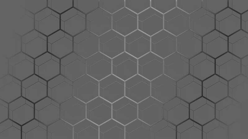 Motion background with a grid of hexagons smoothly changes hue from light gray in the center to darker shades at the edges Pro Video