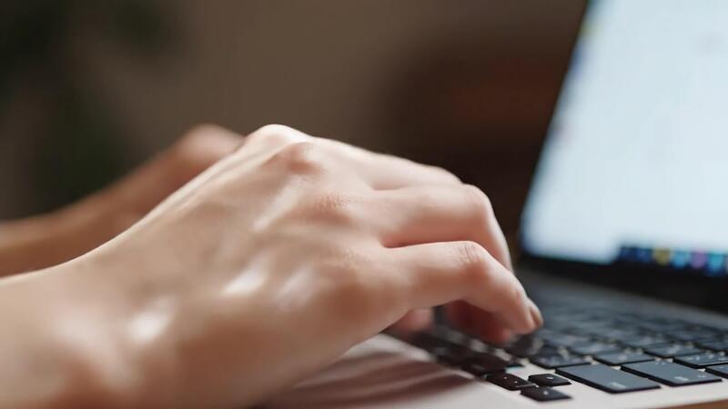 Typing hands on a laptop keyboard close up creating content for online platform Free Video