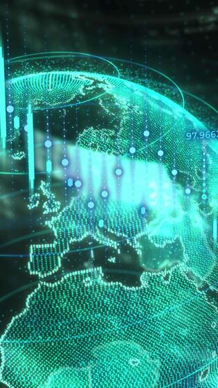 A dynamic depiction of a cybernetic realm with a planet and data streams. Pro Video