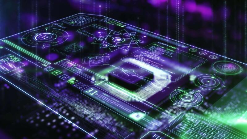 Futuristic CPU and data analysis with charts and keyboard Pro Video