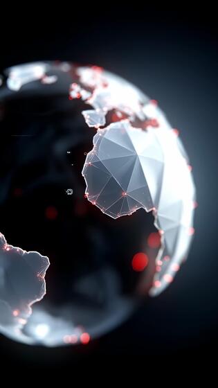 Digital rendition of a globe. The intricate geometric patterns and bright accents emphasize geographical connections and features. Pro Video