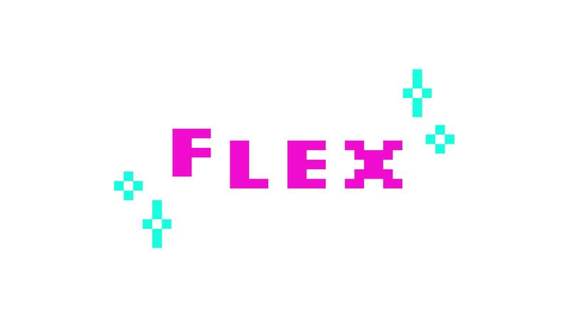 Animated word flex in pink pixel typography. Show off, bragging lingo. Boastful, proud gen z. Teenage meme. Retro 8 bit style bouncing text reaction animation with sparkles. Pixelated jumping letters Pro Video