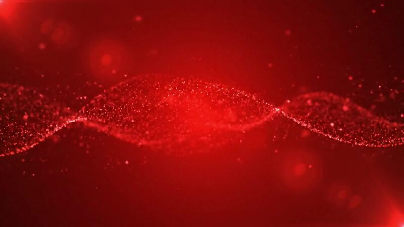 Abstract Red Particle Wave - Dynamic Flowing Dots and Light Streaks on a Dark Red Background. Free Video
