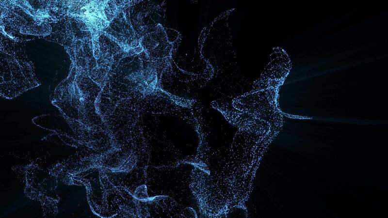 Abstract 3D visualization of blue glowing particles forming dynamic waves on dark background. Futuristic digital flow, data stream, neural network and technology motion design animation Pro Video