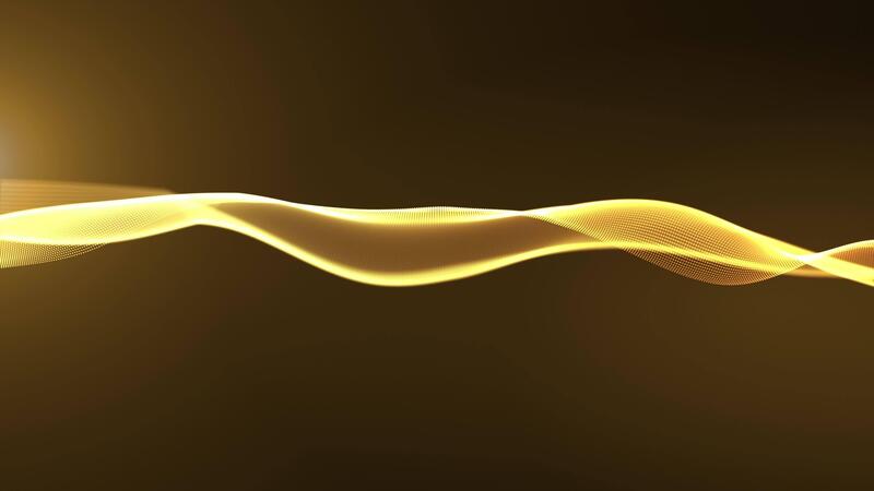 Dynamic, futuristic, abstract wave of glowing golden particles on a black background, representing a technological and modern concept. Perfect for science, data and digital themes Pro Video
