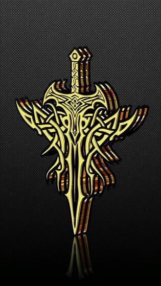 Elite Abstract Golden Pattern of Shield and Sword Rotating on Dark Background, Sophisticated Heraldic Emblem with Ornamental Precision Pro Video