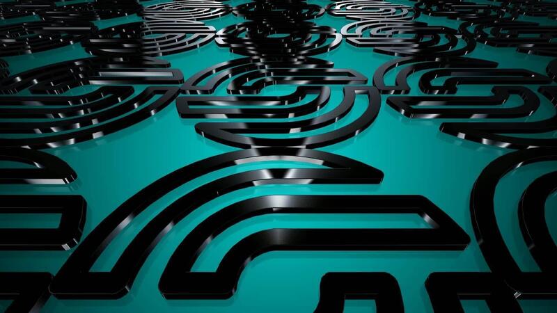 Subtle Rotational Flow over Abstract Black Geometric Composition on Blue Background, Unique Premium Design with Luxurious Light Gradient and Fluid Motion Pro Video