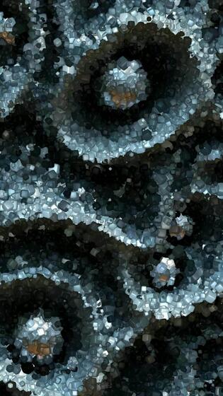 Metallic Spheres Nestled in Porous Cavities Across a Droplet-Textured Surface in a Complex Abstract Composition, Animation Made of Floating Cubes Pro Video