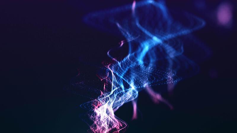Animation of a spiral particle wave. A colorful, high-tech background with glowing particles, a swirling surface of dots forming a complex spiral structure. 4K, seamless loop. Pro Video