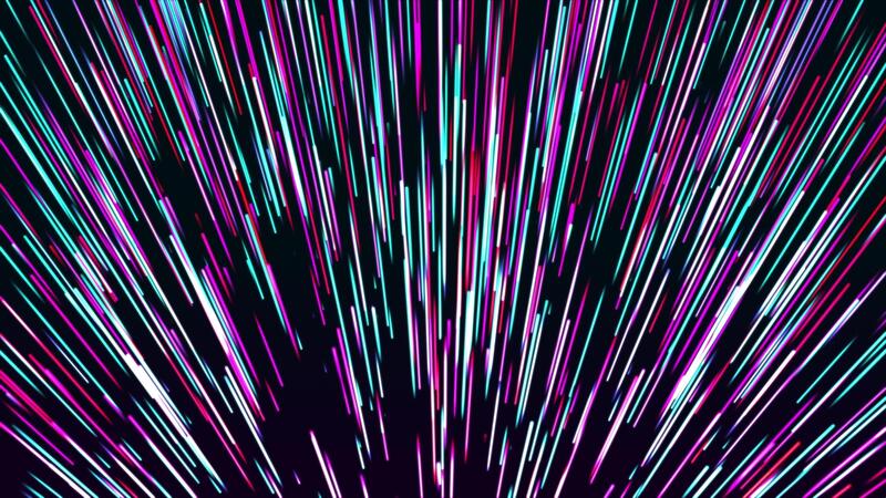 Traveled neon dotted particle lines. Abstract lines of rising upward. Digital background. Abstract sci-fi futuristic hyperspace with bright particles.Seamless loop Pro Video