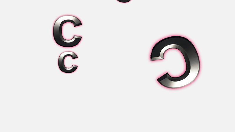 Dynamic 3d Chrome Letter C Falling Animation With Pink Neon Glow On White Background, Sleek Metallic 'c' Shapes With Vibrant Pink Neon Glow On White Background Abstract 3d Render For Modern Technolo Free Video