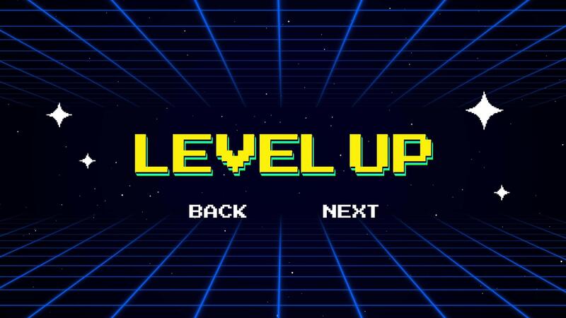 Retro Pixel Level Up Animation with Neon Grid Background Pro Video