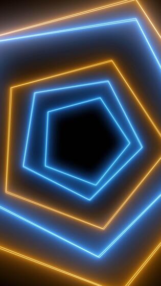 Abstract Vertical Neon Hexagon and Polygon Shapes Tunnel Loop. Pro Video