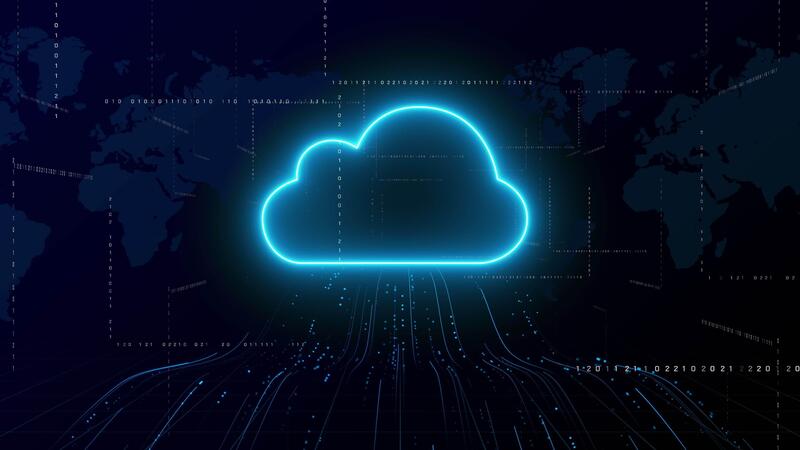 Animated Glowing Cloud Computing Symbol on Digital Circuit Background. Pro Video