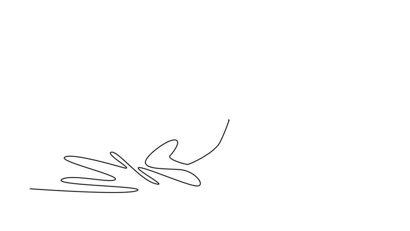 Animated self drawing continuous line draw attractive female wearing goggles and helmet is snowboarding, leaning low into deep toe-side turn with one hand touching snow. Full length one line animation Pro Video