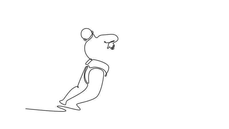 Animated self drawing of continuous line draw two massive Sumo wrestlers locked in a struggle, with one delivering a forceful, open-hand strike to the opponent's head. Full length one line animation Pro Video