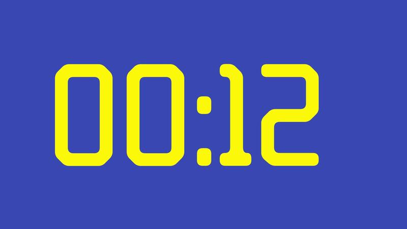 15 second countdown timer watch with yellow digital numbers on calming blue background ideal for presentations, websites, social media and digital themes Free Video