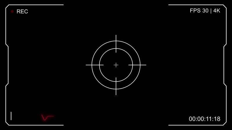 Recording screen overlay alpha channel in futuristic hud style with focus target, timer, signal and recording indicators. Camera viewfinder, Recording frame overlay, Screen interface. 4K Pro Video