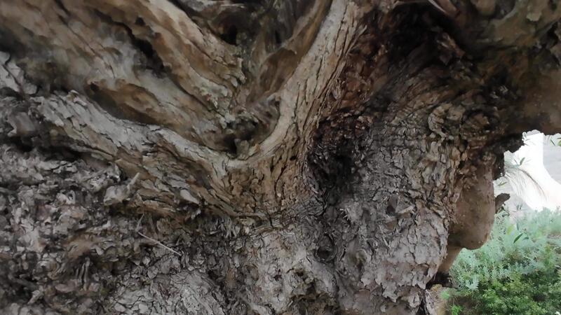 high resolution emphasizing textured surface of ancient olive tree trunk with natural Pro Video
