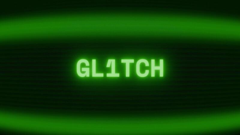 Old green TV screen showing text GL1TCH appearing in random glitch and coding style Free Video